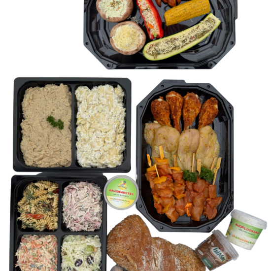 Vlees 4 stuks per persoon Kip shaslick Kipdijsaté Kipfilet gemarineerd Kip drumsticks Salade Oma's rundvleessalade Aardappelsalade 4 huisgemaakte salades Brood Boerderijbrood Sauzen Verdaasdonksaus Knoflooksaus Satésaus Kruidenboter maandag t/m zaterdag bezorgen wij vanaf 30,- kosten hiervan zijn dan 2,50 Vanaf 50,- gratis bezorging Op zon-feestdagen bezorgen wij alleen BBQ-pakketten of Bakplaat pakketten vanaf 10 personen. vanaf 10 personen Gratis BBQ/gasflessen en Borden en bestek erbij. (dit wordt er standaard bij geleverd vanaf 10 personen) incl. bezorgen/ophalen