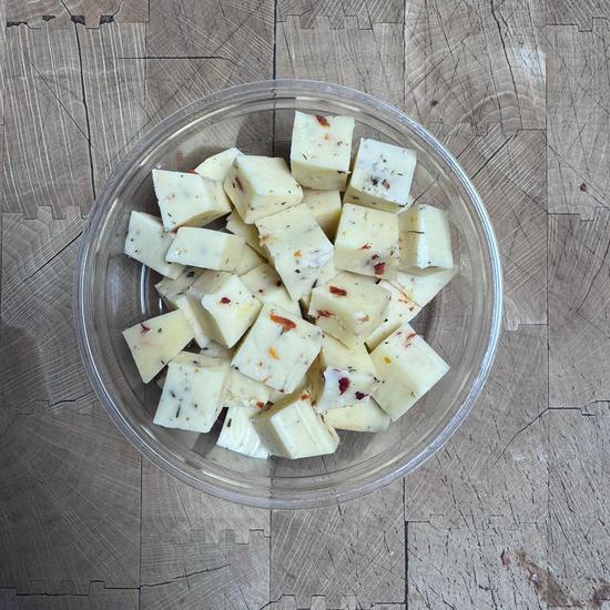 Blokjes tomaat-olijf